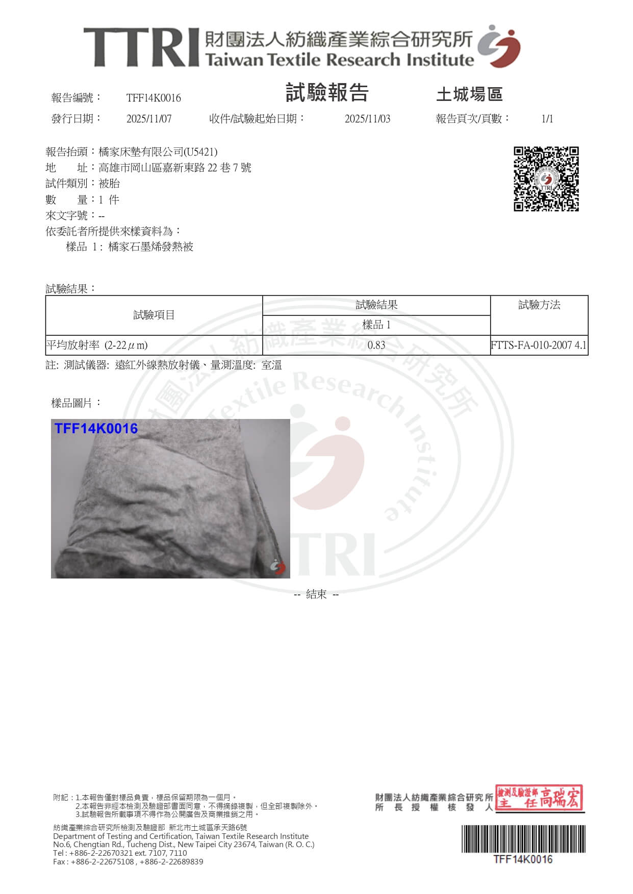 實測遠紅外線發射率高達83%