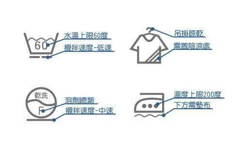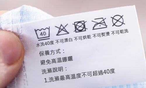 水洗標上的標示為國際通用圖案,有一定的邏輯與道理,如果遇到看不懂的文字,就必須了解這些圖示的意思,才不會把衣物布料洗壞了。